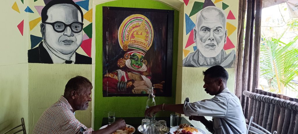 குடிலிலிருந்து மெலிந்த புகைப்படலம் வெளியேறுறிக் கொண்டிருக்க .மதிய உணவை சமைத்துக் கொண்டிருந்தார் பினோய். கஞ்சியுடன்(கேரளியர்களின் கஞ்சி என்பது வடிக்கப்படாத அரிசிச் சோறு) கீரை,துவையல்,பயறு என ஏதாவது ஒரு தொடு கறி உண்டு.