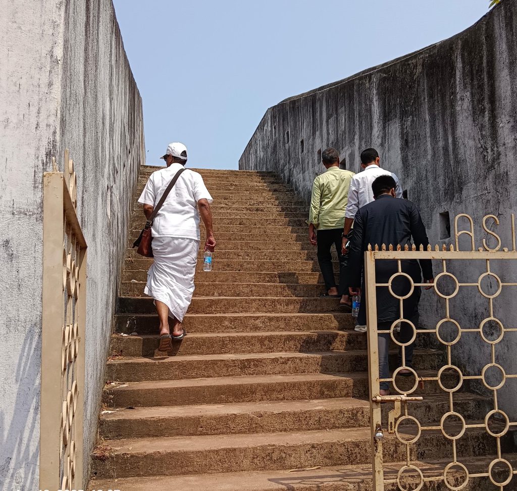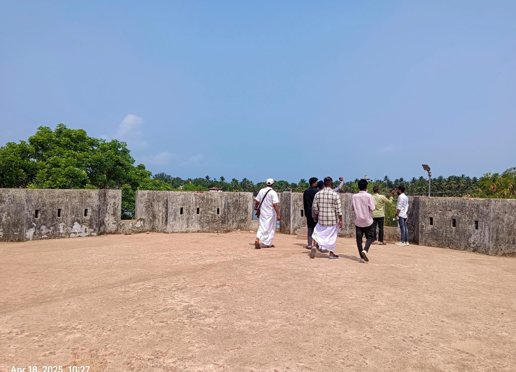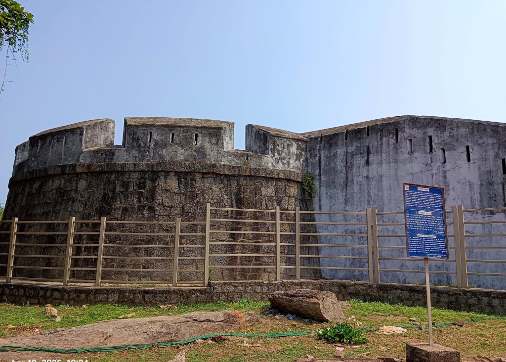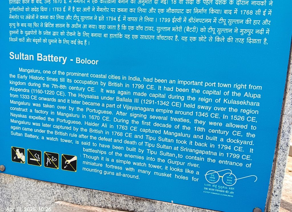 ரிஹ்லா துளுநாடு — ஹைதரலீ, திப்பு சுல்தான் ஆகியோர் எழுப்பிய கண்காணிப்புக் கோபுரம், சுல்தான் பத்தேரி , மங்களூரு. பட விவரம்: தொல்லியல் துறையின் அறிவிப்பு பலக,ஏணிப்படி,சுடும் துளைகள்,மேல்மாடம்,